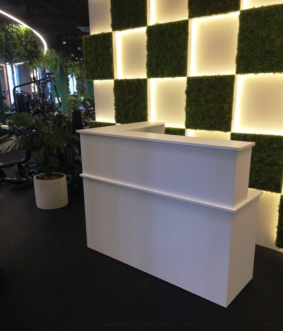 Установили офисную мебель и в том числе стойку администратора.