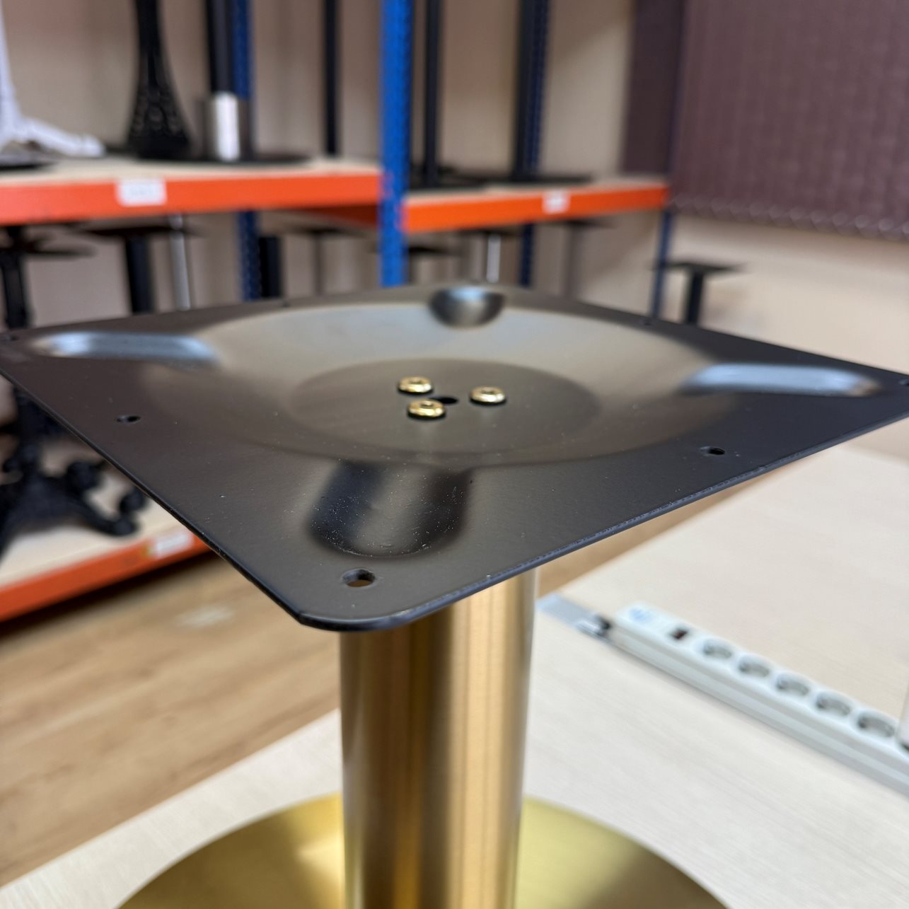 Подстолье из золотой нержавеющей стали (технология нитрид титана). Обратите внимание, насколько внешний вид отличается от дешевых моделей, которые просто покрашены "под золото". Это подстолье просто сияет и переливается холодным матовым блеском.